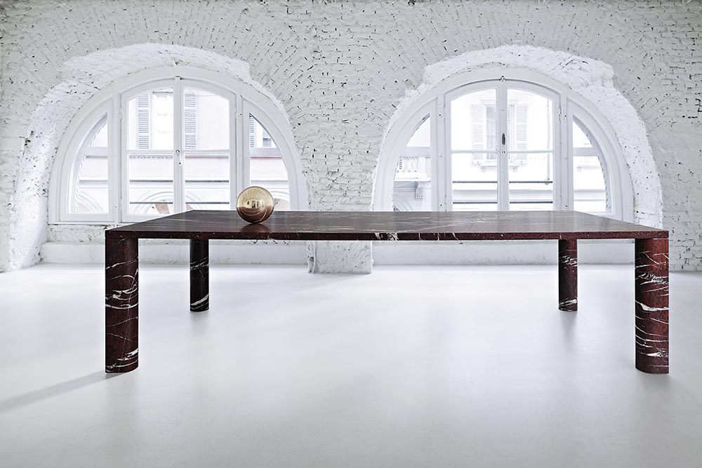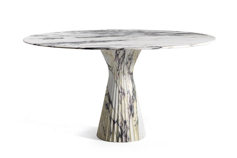 De ronde eettafel Odette van Lithos Design is volledig gemaakt van marmer. De poot is geïnspireerd op de klassieke zuilen met een subtiele versmalling om de rigiditeit van een puur cilindrische vorm te voorkomen. Het geeft de tafel ook iets vrouwelijks. De tafel is 75 cm hoog en 140 cm in doorsnede en verkrijgbaar in Arabescato Vagli (wit marmer) en Nero Marquinia (zwart marmer). www.lithosdesign.com