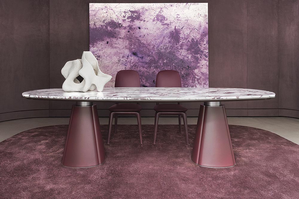 Chapeau is een opvallende tafel met een dynamisch design. Het ontwerp van Monica Armani voor Lago is er met een ovaal of rond blad. Blikvanger is natuurlijk het karakteristieke onderstel dat vanuit elk perspectief weer helemaal anders oogt. Een uitgekiende techniek maakt de balans mogelijk.
