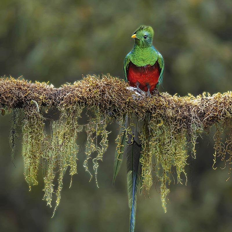 De quetzal, wat in de taal van de Azteken ‘kostbaar’ en ‘mooi’ betekent, is een unieke verschijning met zijn heldergroene en rode kleuren en lange staartveren. Ze komen met name in Costa Rica voor en houden van de nevelwouden op grotere hoogte waar het wat koeler is. Ze eten vooral vruchten en zijn dol op wilde avocado’s. Ze houden hun eigen voedselbomen in stand, want ze slikken de avocado’s heel door, waarna ze als het vruchtvlees is verteerd, de pit uitspugen.