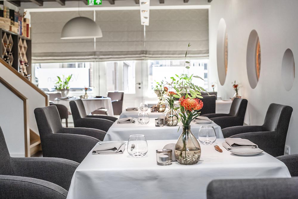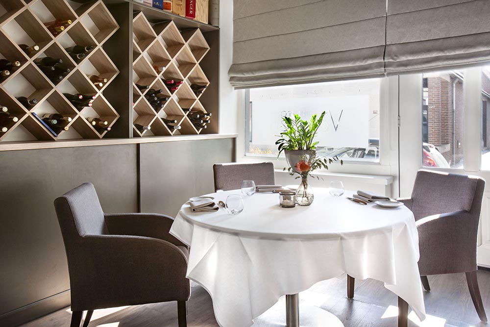 Een voormalig slagerspand in het stadje Ravenstein, nabij Oss en Nijmegen, de locatie van *restaurant Versaen. Trek makkelijke schoenen aan als u hier gaat eten; het stadje Ravenstein is ook leuk voor een wandeling. Drie generaties slagers waren er vroeger op Marktstraat 19 gevestigd; allereerst slagerij Versaen, zo bleek uit de ‘eerste steen’ uit 1902 die bij de renovatie tevoorschijn kwam. De wijnkelder onder de begane grond (je loopt over de glazen toegang bij het binnengaan) is zelfs eeuwenoud. Het restaurant heeft nu vijf jaar een ster. Dat belette chef-kok/eigenaar Hans Derks niet om de menu’s vorig jaar serieus goedkoper te maken. Waar vind je dat nog? In zijn restaurant moet je lekker kunnen eten en drinken voor een redelijk betaalbare prijs. Klinkt goed, toch?!